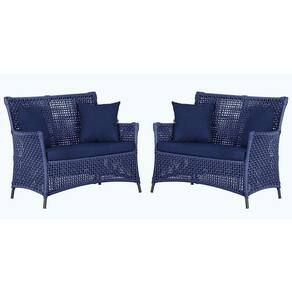 2 Sofás área Externa Igapó Alumínio Preta Corda Náutica E10 Azul