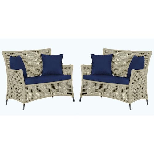 2 Sofás área Externa Igapó Alumínio Preta Corda Náutica E10 Rami - Blush