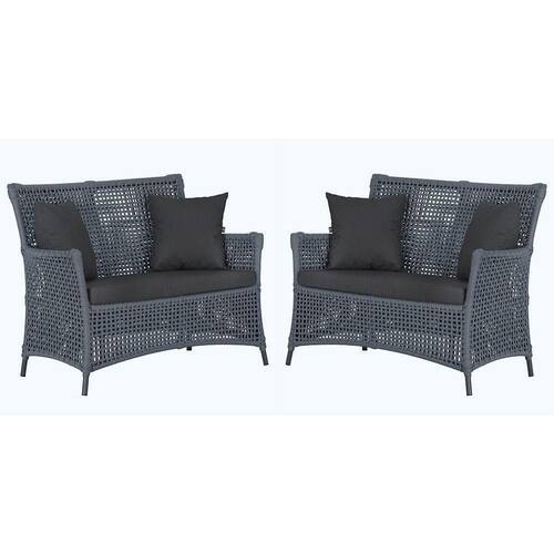 2 Sofás área Externa Igapó Alumínio Preta Corda Náutica E11 Prata