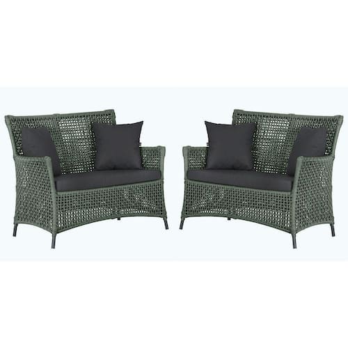 2 Sofás área Externa Igapó Alumínio Preta Corda Náutica E11 Verde - Preto