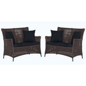2 Sofás área Externa Igapó Alumínio Preta Corda Náutica E12 Marrom
