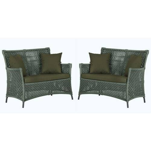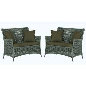 2 Sofás área Externa Igapó Alumínio Preta Corda Náutica E13 Verde