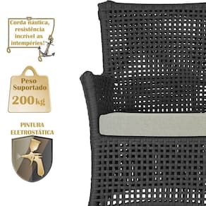 Itens inclusos: 02 Sofas Area Externa Igapo Aluminio Pintura Preta Corda Nautica Estofado Impermeavel 3