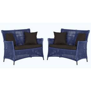 2 Sofás área Externa Igapó Alumínio Preta Corda Náutica E9 Azul