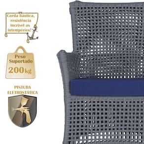 A corda náutica adiciona um toque de rusticidade moderna, enquanto o estofado impermeável garante que sua Sofá esteja sempre impecável, mesmo após uma chuva inesperada ou um acidente com líquidos.