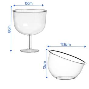 2 taças tropical 1,3 sem tampa + 2 taças inc s/ ped medDescrição:Produto indicado para quem não abre mão de praticidade para servir e limpar.Acrílico cristal é premium qualidade superior- produto de qualidade premium superior;- super resistente porque foi feito para durar;- muito mais fácil de limpar e super prático para servir;- acabamento de alto brilho com design moderno; - indispensável em casa, ideal para comércios, festas, eventos e buffets. muito utilizado por profissionais Sucesso comprovado, quem utiliza aprova e recomendaCuidados:Não colocar no freezer, não utilizá-lo no micro-ondas.Não suporta altas temperaturas como panelas etc...Características:Taça tropical acrílico Altura: 18cmDiâmetro: 15,5cmDiâmetro boca: 15cmCapacidade:1,3litrosTaça inclinada s/pedestalAltura: 12cmBase:: 8cmBoca: 17,6cmCapacidade: 900mlConteúdo:- 2 x unidade de taça tropical- 2 x unidade de taça inclinada sem pedestal 900mlCód: 3t00446Cod:3t00432Sku:tb004944
