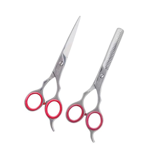 KIT 2 TESOURAS PROFISSIONAL RED CIRCLE 6" DESBASTE DUPLO + FIO NAVALHA VERTIX