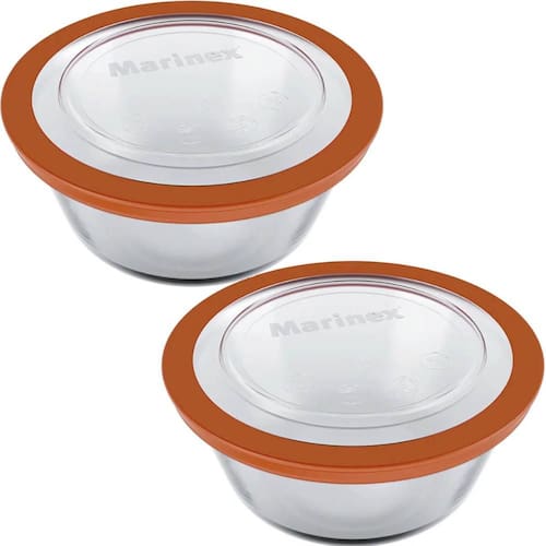 Conteúdo: 2 potes Marinex de vidro transparente com tampa;