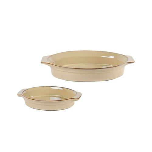 Cód.: UN0024 2 Travessas de Cerâmica Bege Material: Cerâmica Cor: Bege Dimensões: 40x23,5x7,5cm (CxLxP) 28,5x18x5cm (CxLxP)
