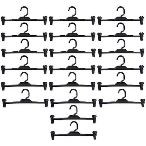 Kit 20 Cabides Plásticos com Presilhas Preto Lojas Expositor para Saias Bermudas.