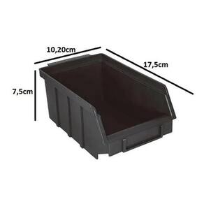 As 20 Peças de Caixa Organizadora Gaveteiro Plástico Bin Nº3 Gaveteiro Plástico Bin Nº 3 - Caixa Organizadora. O Gaveteiro Plástico Bin, também conhecido como Caixa Organizadora, é ideal para organizar itens, peças e acessórios no estoque. Assim é comumente utilizado em almoxarifados, Autopeças, hospitais, farmácias e outros segmentos. Diferencias: Pode ser empilhado ou acondicionado em estruturas metálicas para caixas, o que permite ao cliente catalogar e organizar facilmente seus produtos; O produto é eficiente e seguro, sendo produzido em diversas opções de tamanhos, que oferecem facilidade de adaptação a locais distintos, otimização de espaços e a possibilidade de utilizar o produto em prateleiras ou em formato de estantes. - Ideal Para Organização de Itens Pequenos; - Totalmente Fechada; - Porta-Etiquetas para Identificação; - Formato Empilhável; - Encaixe Traseiro para Estantes; - Dimensões Externas: 10,2 cm largura x 17,5 cm comprimento x 7,5 cm altura ; - Peso do Produto: 0,08 kg; - Capacidade Volumétrica: 1 litro; - Capacidade de Carga por Caixa: 0,5 kg; - Cubagem por Volume: 0,0710 m. Cores Disponíveis:Preto. Marca: Bin