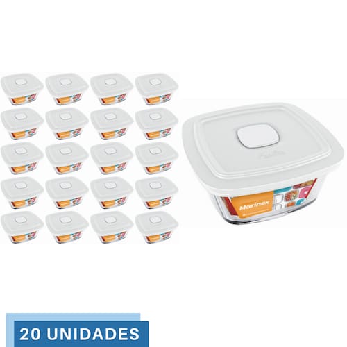 20 Potes De Vidro Marinex Facilita Quadrado Com Tampa 2 Litros