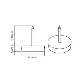 Kit com 20 Sapatas Prego 18x4,5mm tamanho do produto após instalação Preserva a superfície de apoio contra arranhões e outros danos mecânicos causados por esforços de movimentação. Seu sistema de fixação garante maior segurança e durabilidade.Ideal para mesas, cadeiras, poltronas e móveis-Cor: Branco-Protegem pisos e outras superfícies de riscos e danos causados pela movimentação de móveis e outros objetos-Dimensões:Altura da base: 4,5mmAltura total: 20mmAltura do prego: 15,5mmLargura: 18mm Marca: Component