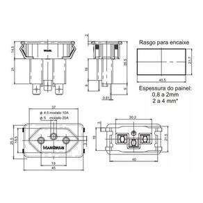 Tomada Margirius preta 3 pinos 20A modelo TPA2-3 E3F, para painéis e aparelhos.Descrição do fabricante:Características elétricas: 20A em tensões de até 250~;Poço interno;Material da cobertura em termoplástico;Contatos em latão;Atendem ao novo padrão brasileiro de plugues e tomadas (NBR 14136).Imagem de amostra do próprio produto.Itens Inclusos:20 Tomada Embutir Painel 3 Pinos TPA2-3 20A Vermelho
