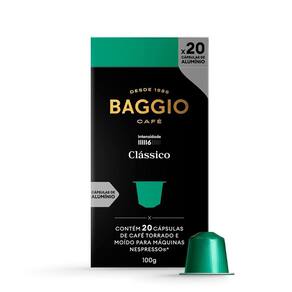 Ingredientes: Café torrado e moído em cápsulas. Alérgicos: Não contém glúten. Condições de Armazenamento: Conservar em local seco, fresco e arejado. Validade: 12 meses. Fabricante: Baggio Café. Marca: Não Informado