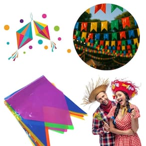 As bandeirinhas são confeccionadas em plástico resistente, o que garante cores vibrantes e maior durabilidade. Além disso, estão amarradas em um cordão de TNT, proporcionando ainda mais firmeza e resistência. Essa combinação torna o kit perfeito para ambientes internos e externos, suportando sol, vento e até chuva sem perder o charme.
