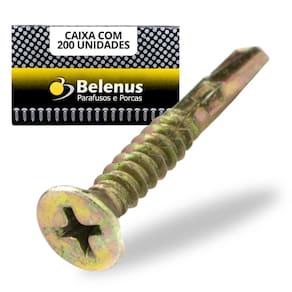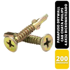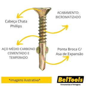 Parafuso Drywall Aço Médio Carbono Cementado e Temperado Bicromatizado Cabeça Chata Phillips Ponta Broca C/ Asa de Expansão, Rosca Din 7970 (Din en Iso 1478)