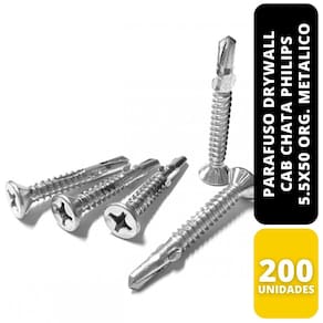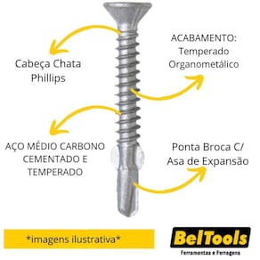 Parafuso Drywall Aço Médio Carbono Cementado e Temperado Organometálico Cabeça Chata Phillips Ponta Broca C/ Asa de Expansão, Rosca Din 7970 (Din en Iso 1478)