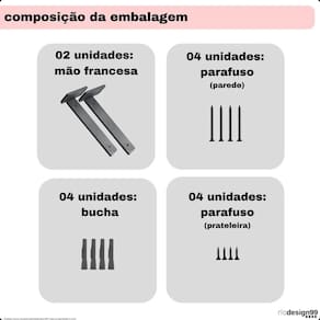 Conteúdo da embalagem: Modelo: mão francesa duas unidades Tamanho: 20cm Cor: preto fosco. Acessórios: buchas e parafusos.