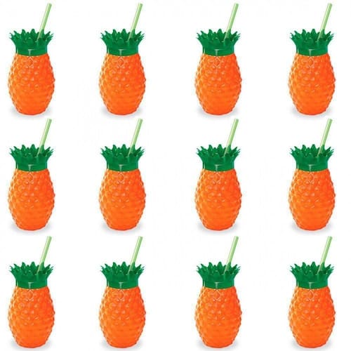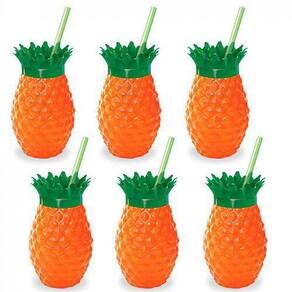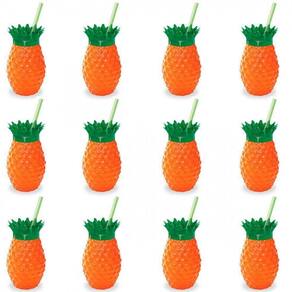 20 COPOS ABACAXI COM CANUDO E TAMPA, INJETEMP