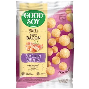 Você irá receber 20 unidades do Snack de Soja GOODSOY Sabor Bacon 25g. O Snack de Soja GOODSOY Sabor Bacon é a opção perfeita para quem busca um petisco crocante e saboroso, sem abrir mão da qualidade nutricional. Feito com proteína de soja e temperado com um irresistível sabor de bacon, é ideal para qualquer hora do dia. Benefícios