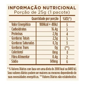 Ingredientes Farinha de soja integral, proteína texturizada de soja, óleo de palma, amido de mandioca, maltodextrina, sal, açúcar, extrato de levedura, realçador de sabor glutamato monossódico, corante caramelo IV, aromatizantes e acidulante ácido cítrico. Alérgicos Contém derivados de soja. Pode conter traços de leite. Não contém glúten. Esse produto contém bacon de verdade Não, o sabor bacon é obtido por meio de aromatizantes. É frito ou assado Os snacks são assados, garantindo uma textura crocante com menos gordura. Pode ser consumido por vegetarianos Sim, pois não contém ingredientes de origem animal, apenas aromatizantes que remetem ao sabor bacon. É indicado para dietas ricas em proteína Sim, pois é uma ótima fonte de proteína vegetal. Marca: Não Informado