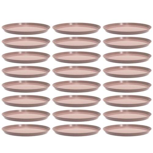 Garantia: 90 dias / Peso de cada: 202g / Cor predominante: amêndoa / Referência: 7794462433331; Dimensões de cada bandeja: 34cm (D) x 2cm (A); Conteúdo: 24 bandejas redondas; Material: polipropileno.
