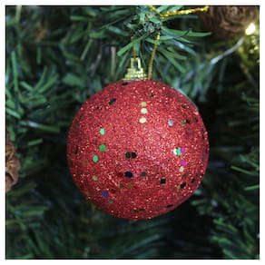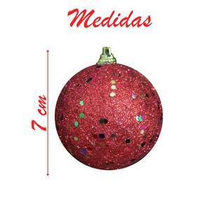 24 Bolas Enfeite Natalino Árvore Natal Vermelho Glitter 70mm