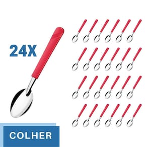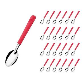 Conjunto de Colher As colheres de mesa da linha Luna são um conjunto elegante e funcional para qualquer ocasião. Com um cabo vermelho vibrante feito de plástico de alta qualidade, essas colheres são confortáveis de segurar e fáceis de identificar em meio a outros utensílios de mesa. O aço inox das colheres garante que elas permaneçam brilhantes por um longo tempo, enquanto o design elegante torna as colheres uma adição atraente à sua coleção de utensílios de cozinha.