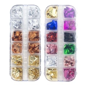 Indicados para a decoração, alongamento e encapsulamento de unhas naturais ou artificiais. A folhas de ouro é uma opção popular para quem deseja criar um visual sofisticado com efeitos diferentes e elegante nas unhas, especialmente em ocasiões especiais.??O kit inclui cores vibrantes que trazem uma aparência moderna, criativa e ousada às unha, são mais de 10 cores diferentes! A combinação dessas duas cartelas resultará em uma arte linda.?Acompanha caixa de plástico com divisórias e tampas para melhor conservação e organização evitando desperdícios e sujeira em seu uso e aplicação. Folhas cortadas em diversos tamanhos.