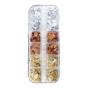 Contém:? 01 - Embalagem com 12 Divisórias, 4 com Folhas de Bronze, 4 com Folhas de Prata, 4 com Folhas de Ouro 01 - Embalagem com 12 Divisórias, cada divisória com uma cor incrível de folhas.
