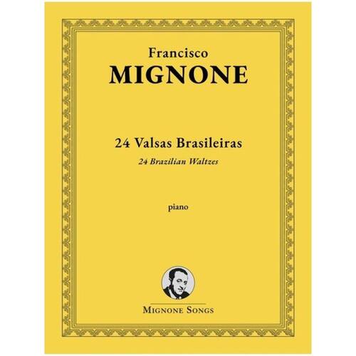 Com o intuito de resgatar e preservar a obra pianística do compositor brasileiro Francisco Mignone (1897-1986), apresentamos a série 24 Valsas Brasileiras para piano solo. O trabalho contou com a supervisão e revisão técnica de Maria Josephina Mignone, a quem boa parte destas valsas foi dedicada e a quem o compositor confiou orientações sobre a interpretação de suas obras. Destina-se, portanto, como álbum de performance para musicistas profissionais e estudantes. Compostas entre 1963 e 1984, as Valsas Brasileiras retratam fortemente o estilo musical de Mignone, marcadas por tempos, ritmos, melodias, harmonias, texturas e dinâmicas bastante expressivas e com particularidades idiomáticas, como a busca pela sonoridade do violão. Elas combinam os elementos nacionalistas e tradicionais, que o compositor usou de forma ampla e habilidosa, com um novo e rico vocabulário musical, fruto de suas pesquisas e investidas. *** In order to rescue and preserve the piano work of Brazilian composer Francisco Mignone’s (1897-1986), we present the series 24 Valsas Brasileiras (24 Brazilian Waltzes) for solo piano. This work was done under the supervision and technical review of Maria Josephina Mignone, to whom most of these waltzes were dedicated, and to whom the composer gave his guidelines about the interpretation of his works. Therefore, they are meant to be a performance album for both professional musicians and students. Composed between 1963 and 1984, the Valsas Brasileiras (Brazilian Waltzes) strongly portray Mignone’s musical style, marked by tempos, rhythms, melodies, harmonies, quite expressive textures and dynamics, along with idiomatic peculiarities, such as the search for the sonority of the guitar. In short, they combine the nationalistic and traditional elements, which the composer made use so widely and skillfully, with an innovative and rich musical vocabulary, as a result of his research and advances.