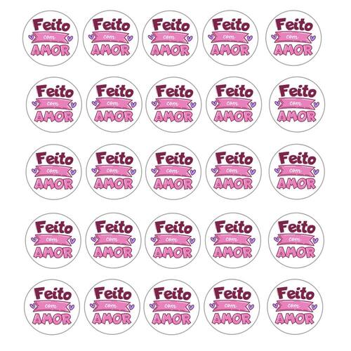 25 Adesivos Vinil Para Embalaguens Frase Feito c/ Amor 4,5cm