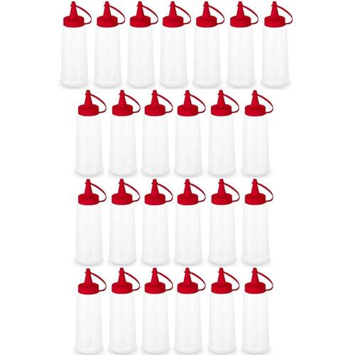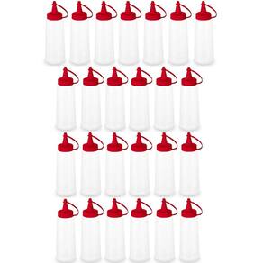 25 Frascos para Molhos Bisnagas Plásticas 250ml para Lanchonete Bar Ketchup Tampa Vermelha.