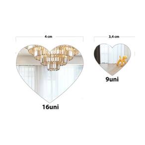 kit com 25 mini espelhos de coração mini corações decorativos mais leves do que espelhos comuns para decorar seu Quarto, Sala, Hall, Escritório, Banheiro ou qualquer local desejadoCARACTERÍSTICAS:- Espessura: 1,5 mmACOMPANHA: 16 x Corações de 4 x 3,5 cm09 x Corações de 3,5 x 3 cmMATERIAL:- Acrílico espelhado. MUITO mais leve do que o vidro, por isso são indicados para o uso onde se preza pela segurança.ONDE APLICAR:- Casa: Parede de quarto, sala, varanda, etc...- Móveis em geral- Lojas: Vitrine- Escritório- Escola- CrecheCUIDADOS:- Nossos espelhos decorativos podem ser aplicados em qualquer superfície LISA, ideais para aplicação em paredes PLANAS, vidros, azulejos e onde mais sua imaginação mandar.- Utilize fitas dupla face para fixação dos espelhos. Kit já vai com as fitas.- Para limpeza utilizar flanela macia e água.- O acrílico espelho possuí uma PELÍCULA de proteção no lado espelhado.- Essa PELÍCULA a primeira vista pode causar a impressão de riscado ou embaçado as peças, mas é só removê-la após a instalação.