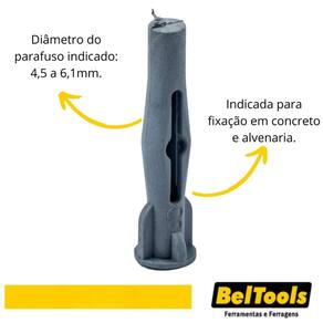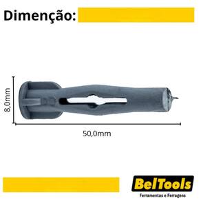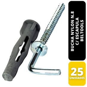 Bucha de nylon n.8 com escápula - Beltools (pacote c/ 25 un) Conteúdo: Pacote com 25 unidades. Descrição: Indicada para a fixação em alvenaria e concreto como suporte para os mais variados objetos. Utilizar bucha com diâmetro de 8 mm. Material: Nylon. Diâmetro: 5,5mm. Comprimento: 70,0mm.
