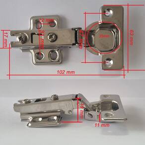 Dobradiça caneco 35mm em aço inox para portas de armário. Quantidade: Kit com 2 dobradiças caneco 35mm 8 parafusos Dobradiça inox reta kit c/2 Esta dobradiça caneco de 35mm, fabricada em aço inox de alta qualidade, é a escolha ideal para quem busca durabilidade e resistência à corrosão. Perfeita para portas de armários de cozinha, banheiro ou qualquer outro móvel, proporciona um fechamento seguro. Com design discreto, oferece ajuste preciso, garantindo a funcionalidade e a estética dos seus móveis. Instalação fácil e compatível com uma ampla variedade de materiais, esta dobradiça é a solução definitiva para quem deseja unir praticidade e estilo. São indicadas para móveis com portas sobrepostas que necessitam de um fechamento total, isto é, móveis simples de duas portas ou módulos de roupeiros modulados. Além disso, as dobradiças retas possuem uma limitação de abertura, ou seja, elas não abrem ângulos maiores que 90º Dobradiça em aço inox 201 calço fixo reto welt com parafusos Benefícios: As dobradiças possuem design funcional permite o fechamento suave e silencioso das portas. São ideais para uso em móveis, proporcionando maior durabilidade às portas. Aplicações: Indicado para uso em móveis, para instalação de portas em armários, gabinetes, estantes e etc. Capacidade: A dobradiça é ideal para portas de 16 a 24mm; com duas dobradiças, suporta 25 kg. Características: Indicado para uso em móveis, para instalação de portas em armários, gabinetes, estantes e etc. Material: aço inox 201 com parafusos Medidas 111 x 62mm Caneco: diâmetro 35mm, profundidade 11,5mm. Entre furos 48mm Ângulo de abertura 90º Calço fixo duplo 4 furos . Entre furos 33mm do vendedor: 3 meses do vendedor: 90 dias Marca: Não Informado Ean: 7898739903784