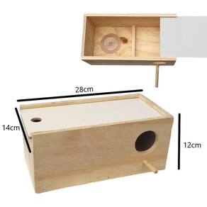 Ninho pequeno horizontal para Agapornis é feito de madeira compensado naval, dando maior resistencia contra a umidade. Ele é projetado para ser colocado em posição horizontal em uma gaiola ou viveiro. Esse tipo de ninho proporciona um espaço aconchegante e seguro para que os Agapornis possam se reproduzir e criar seus filhotes.