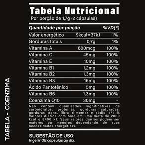 Óleo de soja, maltodextrina, ácido ascórbico, coenzima q10, nicotinamida, acetato de racealfatocoferol, d-pantotenato de cálcio, riboflavina, cloridrato de piridoxina, cloridrato de tiamina e acetato de retinol, emulsificante lecitina de soja e glaceante cera de abelha. Composição da capsula : gelatina, água purificada, umectante glicerina, corantes dióxido de titânio, vermelho 40 e vermelho azorrubina.