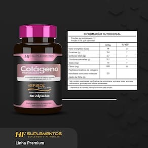 Ingredientes: óleo de linhaça, peptídeos bioativos de colágeno hidrolisado com peso molecular médio de 2kda, gelatina, carbonato de cálcio, água purificada, umectante glicerina, emulsificante lecitina de girassol e corantes dióxido de titânio , carmim e óxido de ferro preto .