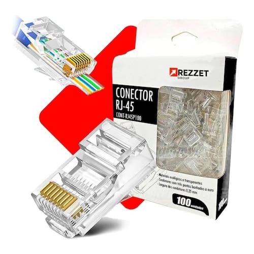 2X Conectores De Internet Rede Rj45 Vazado Cat5E Cat6E Banha