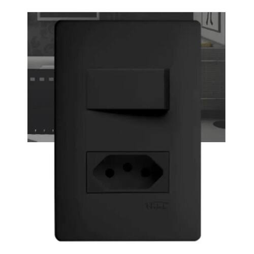 2X Conjunto Interruptor Simples + Tomada 20A Black Fosco Fam