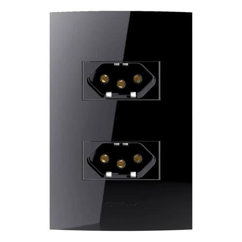 2X Conjunto Tomada Dupla 20A 2P+T 4X2 Preto Black Piano Alum