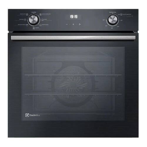 Forno de embutir elétrico com 80L de capacidade, função autolimpante, timer sonoro com desligamento e grill elétrico.Timer
