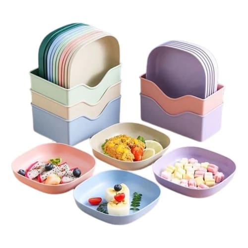 2X Kit 10 Pratos Coloridos Para Servir + Base Organizador F5