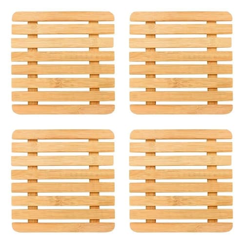 2X Kit 4 Descanso De Panela De Bambu Quadrado De Mesa Cozinh