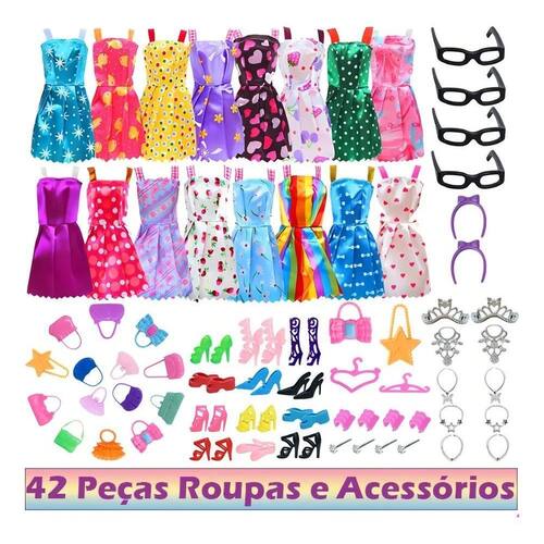 2X Kit 42 Peças Para Barbie Boneca Roupas Acessórios Bolsas