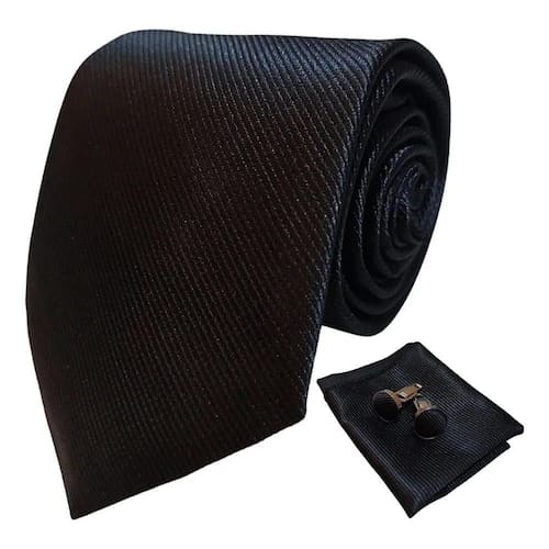 2X Kit Gravata Social Com Lenço E Abotoadura Tradicional