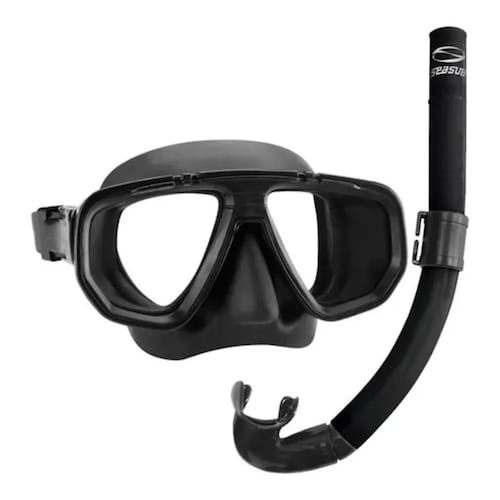 2X Kit Mergulho Dua Mascara Preta Snorkel Pesca Sub Seasub