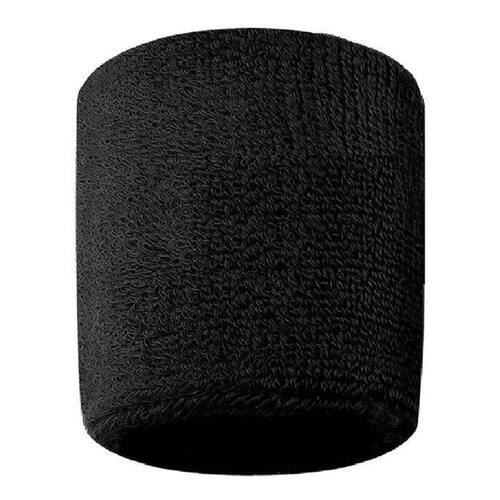 2X Munhequeira Pulso Toalha Preta Algodão Unissex Academia